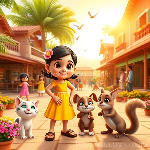 One sunny afternoon, the older boys tried to break more branches from the mango tree, ignoring the gentle rules. But Mira, with her brave heart, and the animals Raju, Pari, and Chiku, stood firm and protective. They gently but firmly told the boys to stop, reminding them how important kindness and respect were. The tree, sensing the love and courage around it, whispered a soft thank you to Mira. In that moment, everyone realized that caring for each other and nature made their village stronger and happier. The mango tree shimmered with renewed life, its branches reaching out in gratitude.