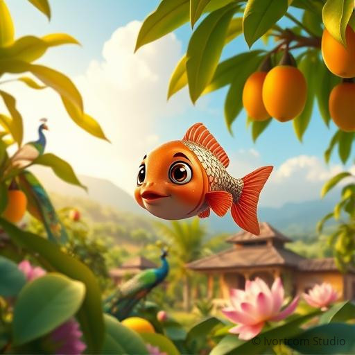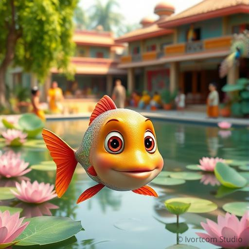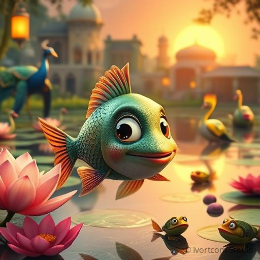 In a shimmering pond nestled within a vibrant Indian village, a tiny fish named Chintu gazed at the sky through the water’s surface. Curious about the world beyond, he often wondered what lay beyond the gentle ripples. One sunny morning, as the lotus flowers bloomed and peacocks called in the distance, Chintu decided he wanted to see the world above the water. His heart fluttered with excitement and a little fear, but his dreams sparkled brighter than the morning sun.