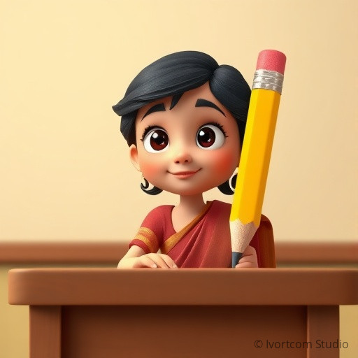 In a lively Indian village, young Anjali sat at her wooden desk, staring at her old, colorful pencil. She wondered what secrets it held. Suddenly, to her amazement, the pencil whispered, 'Hello, Anjali!' Her eyes widened with wonder. She couldn’t believe her ears! The pencil, bright yellow with a tiny red eraser, had come to life and could speak! Excited and curious, Anjali decided to find out more about her magical pencil and the stories it wanted to tell.