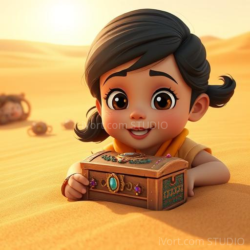 In a small vibrant village near the Rajasthan desert, a curious little girl named Anaya loved to explore. One hot afternoon, she noticed a strange shimmer beneath the sand dunes. Her eyes sparkled with wonder—what could it be? She decided to find out, feeling a mix of excitement and a tiny bit of fear. Anaya’s heart beat fast as she stepped closer, ready for an adventure that would reveal more than just sand.