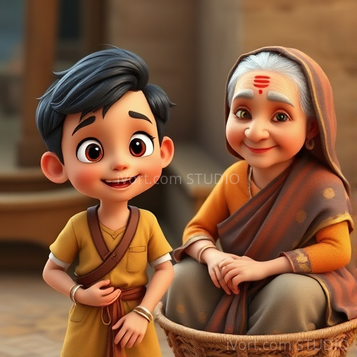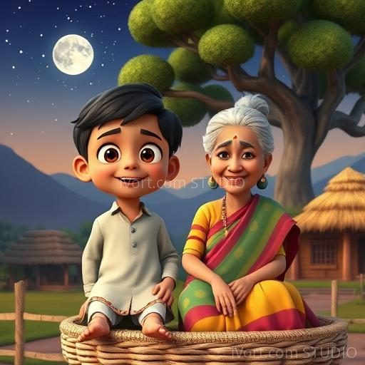 In a small Indian village nestled between lush green fields and colorful markets, little Aarav gazed up at the night sky. The stars shimmered like tiny diamonds, but tonight, he wondered if there were secrets hidden beyond them. His grandmother, sitting beside him on a woven charpai, smiled softly and told him stories of the stars and the mysterious depths of the earth. Aarav's eyes sparkled with curiosity, eager to discover what secrets the universe and his land held.