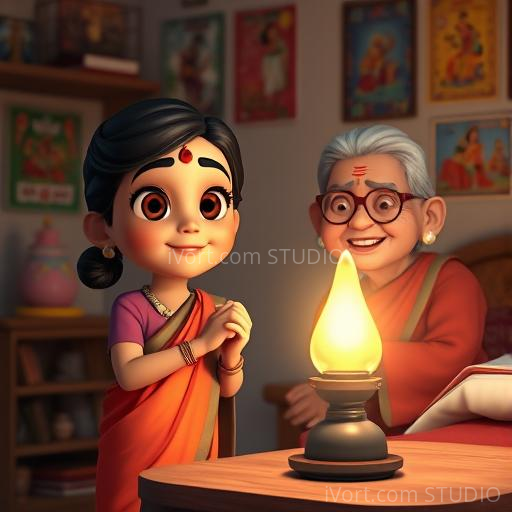 That night, Anaya realized the lamp’s true magic wasn’t in its glow, but in the stories and the love it brought to everyone. She learned that the real light comes from kindness, courage, and sharing stories from our culture. From then on, she kept the lamp as a reminder that the brightest light is the one inside us all.
