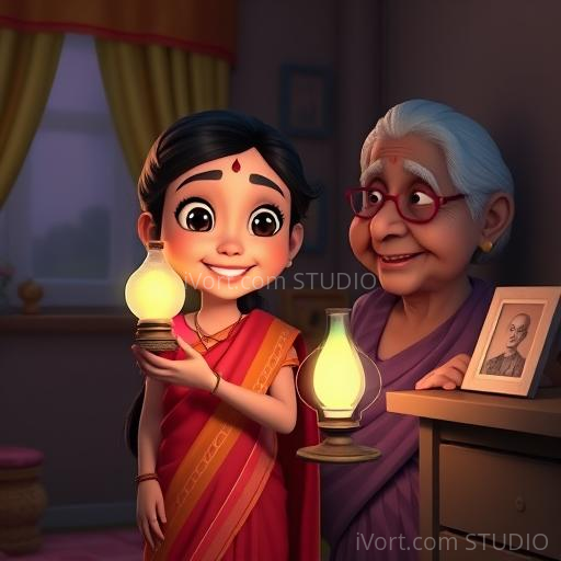 That night, as Anaya slept, the lamp glowed softly on its own, casting a gentle light across her room. To her surprise, the lamp began to whisper stories from India’s rich history—tales of brave warriors, wise sages, and vibrant festivals. Anaya listened with wide eyes, feeling as if she was traveling through time and space.